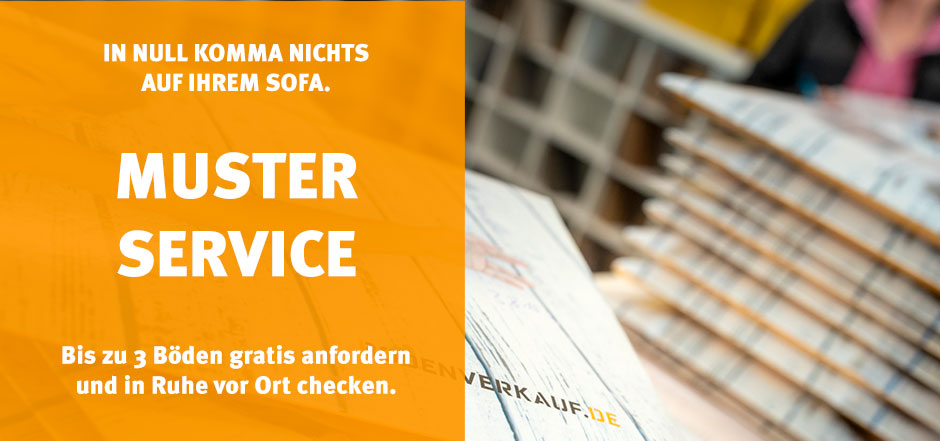 Wir sind Ihnen bei der Auswahl Ihres Wunschbodens mit dem Versand von maximal 5 Bodenmustern in der Größe von ca. 20 x 20 cm gerne behilflich. Bis zu drei Muster verschicken wir deutschlandweit gratis – darüber hinaus fällt lediglich eine geringe Kostenpauschale von 1,50 EUR pro Muster und deutschlandweit einmalige Versandkosten von 1,95 EUR an. Die Versandkosten für einen Musterversand nach Österreich, in die Schweiz und in die Niederlande betragen 6,95 EUR.