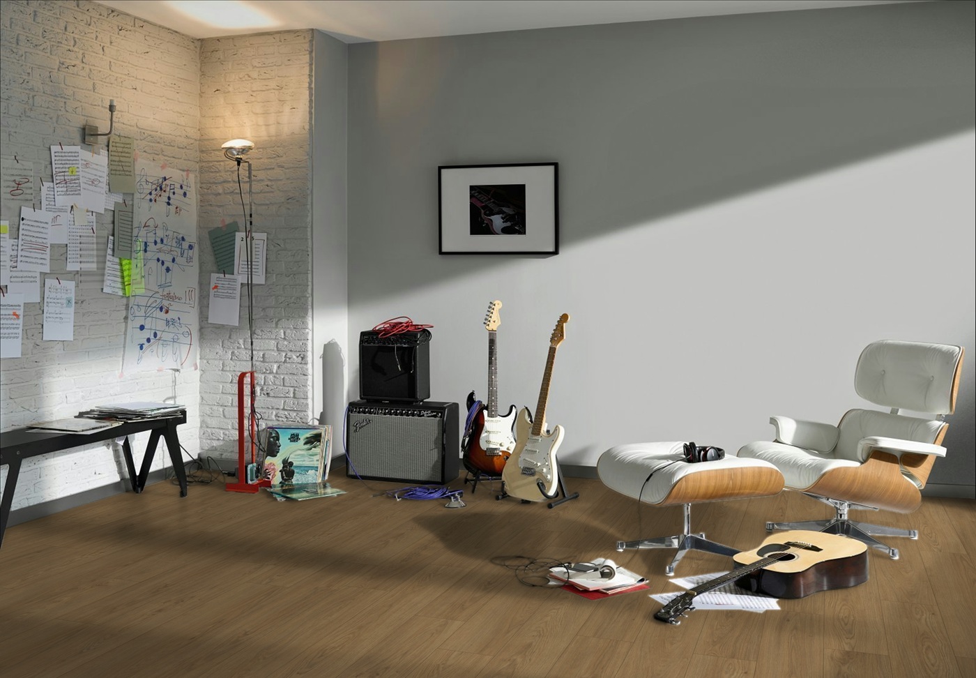 Laminat PARADOR Classic 1050 Eiche Vintage natur Landhausdiele Antikmattstruktur 4-seitige V-Fuge. Aufbauhöhe 8 mm. Empfohlene Nutzungsklasse 23/32. Der Boden ist schadstoffgeprüft, trägt das PEFC-Siegel und ist mit "Der Blaue Engel" ausgezeichnet. Made in Germany! Hersteller: PARADOR. Produktgruppe: Classic 1050. Preisempfehlung: 25,99 € / m². Empfohlene Nutzungsklasse 23/32: geeignet für Wohnräume mit intensiver Nutzung und Gewerberäume mit mittlerer Nutzung. Die umlaufend gefasten Längs- und Kopfkanten ergeben ein Verlegebild mit dem Charme und der Eleganz eines echten Holzdielen-Bodens, da jede einzelne Diele betont wird. Antiker Holzboden findet hier seine wertige, reale Interpretation. Rustikal ausgeprägt mit Bearbeitungs- und Gebrauchsspuren entsteht eine matte Antik-Struktur. Hochabriebfeste Deckschicht aus Melaminharz-Overlay. Dekorschicht, bedruckt mit aufwendig reproduzierten Holzdekoren aus organischen Farben. Quellgeschützte Trägerplatte und die Rundum-Kantenimprägnierung sorgen für 60 % besseren Quellschutz als EN 13329. Patentierte Klick-Mechanik mit SAFE-LOCK-Profil: Dielen einfach zusammenfügen und sicher einrasten lassen. Ideal zum Renovieren durch geringe Gesamtaufbauhöhe von nur 8 mm. Für die Verlegung auf Warmwasser-Fussbodenheizungen geeignet. Abmessungen je Diele: Länge / Breite / Höhe: 1285 mm / 194 mm / 8 mm. Verpackungseinheit: 10 Dielen / Paket. 2,493 m² / Paket.